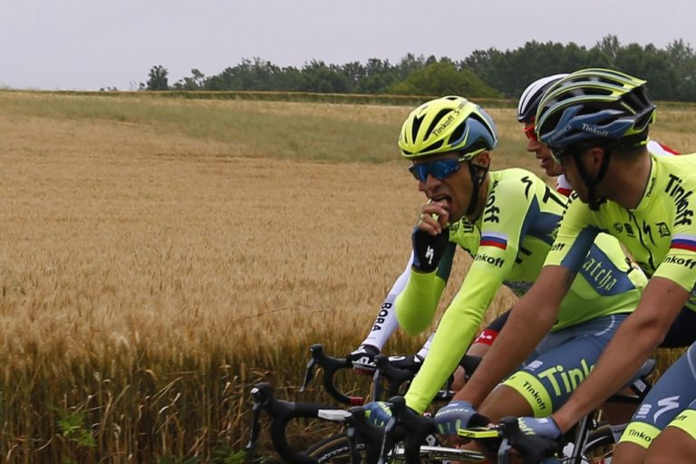 Španielsky cyklista Alberto Contador počas štvrtej etapy 103. ročníka Tour de France, ktorá merala 237,5 kilometra a viedla zo Saumuru do Limoges (5. júl 2016). Foto: SITA/AP