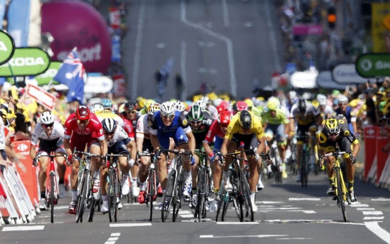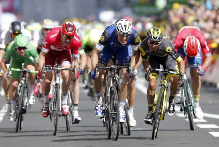 Štvrtú etapu 103. ročníka Tour de France vyhral Nemec Marcel Kittel, slovenský cyklista Peter Sagan skončil tretí. (5. júl 2016). Foto: SITA/AP