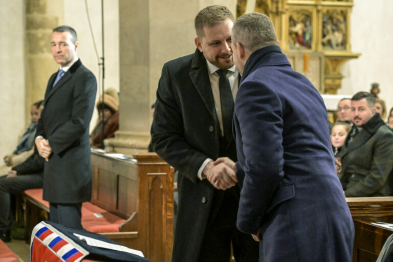 Prezident SR Peter Pellegrini (druhý sprava) počas slávnostnej svätej omše, ktorá sa konala pri príležitosti štátneho sviatku výročia vzniku Slovenskej republiky v Katedrále sv. Martina v Bratislave. Bratislava, 1. január 2025. Foto: SITA/Milan Illík.