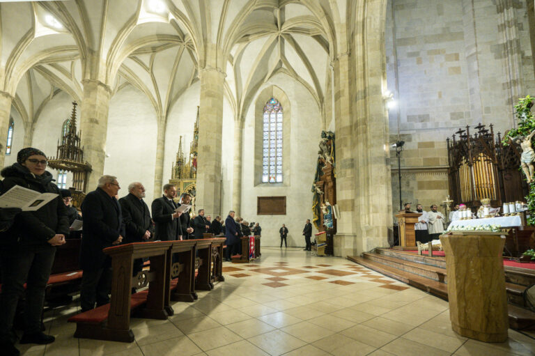 Atmosféra počas slávnostnej svätej omše, ktorá sa konala pri príležitosti štátneho sviatku výročia vzniku Slovenskej republiky v Katedrále sv. Martina v Bratislave. Bratislava, 1. január 2025. Foto: SITA/Milan Illík.