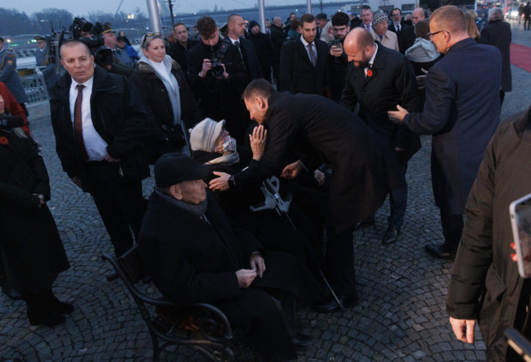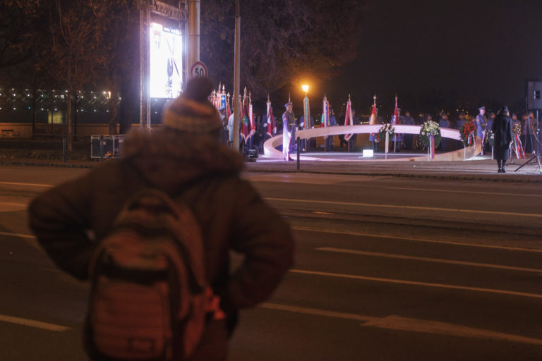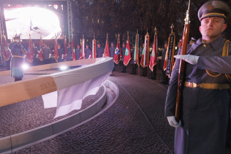 Atmosféra počas slávnostného odhalenia Hrobu neznámeho vojaka, uloženia ostatkov neznámeho vojaka 1. česko-slovenského armádneho zboru, ktorý bojoval na Duklianskom bojisku v Karpatsko-duklianskej operácii, symbolického zapálenia večného ohňa a pietneho aktu na Rázusovom nábreží v Bratislave. Bratislava, 5. december 2022. Foto: SITA/Branislav Bibel