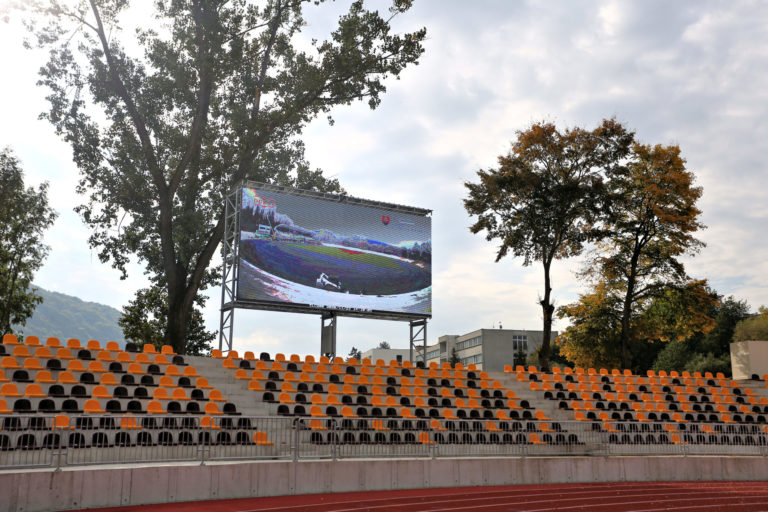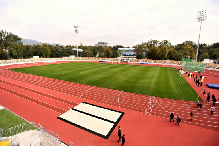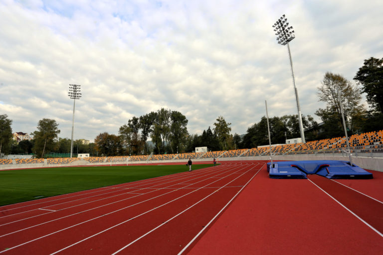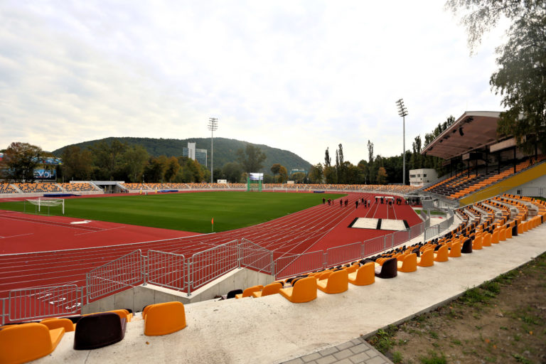 Zrekonštruovaný Atletický štadión SNP Vojenského športového centra Dukla Banská Bystrica na Štiavničkách v Banskej Bystrici. Banská Bystrica, 5. október 2021. Foto: SITA/Peter Rusko