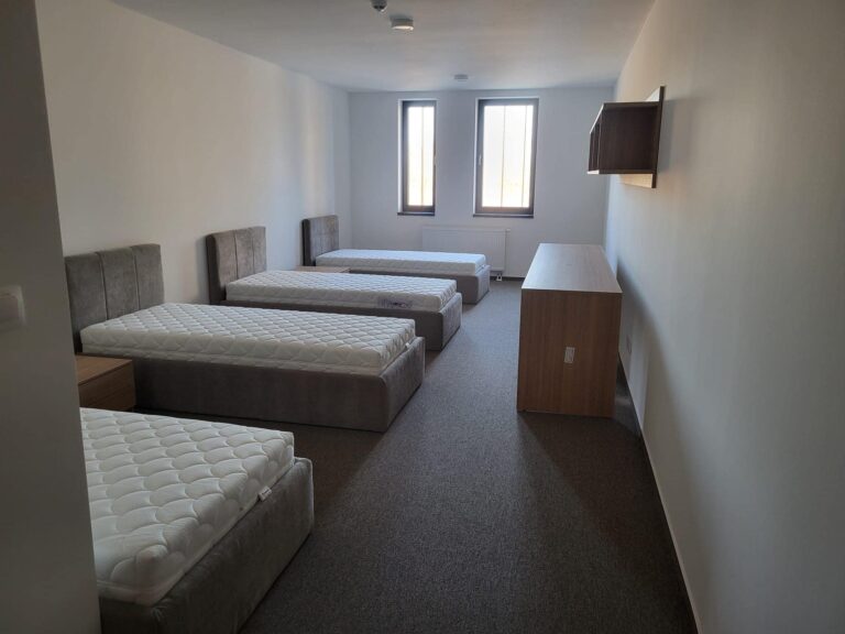 Ubytovacie priestory novej skolaudovanej Šport arény v Malackách, v ktorej aktuálne dokončujú nábytky a športové vybavenie. Budovu tvoria dve časti: hokejová hala a multifunkčná hala (hádzaná, volejbal, basketbal, florbal, futsal). Súčasťou komplexu je i ubytovací trakt pre športovcov na účely sústredení, priestory pre regeneráciu, hokejový trenažér, šatne a VIP priestory. Slávnostné otvorenie je naplánované na 25. marca 2025. Malacky, 19. marec 2025. Foto: SITA/Mestský úrad Malacky