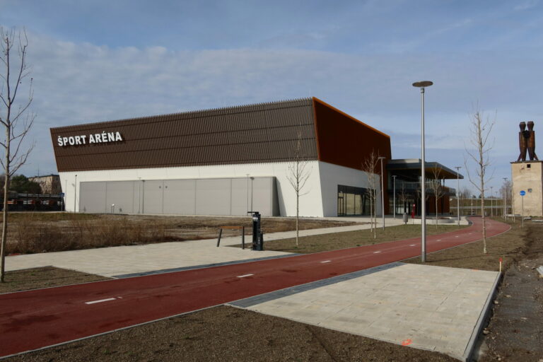 Budova novej skolaudovanej Šport arény v Malackách, v ktorej aktuálne dokončujú nábytky a športové vybavenie. Budovu tvoria dve časti: hokejová hala a multifunkčná hala (hádzaná, volejbal, basketbal, florbal, futsal). Súčasťou komplexu je i ubytovací trakt pre športovcov na účely sústredení, priestory pre regeneráciu, hokejový trenažér, šatne a VIP priestory. Slávnostné otvorenie je naplánované na 25. marca 2025. Malacky, 19. marec 2025. Foto: SITA/Mestský úrad Malacky