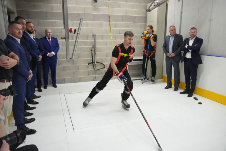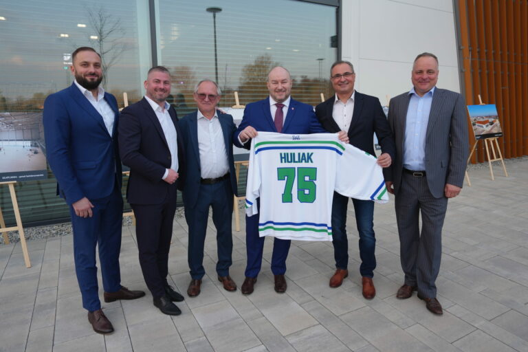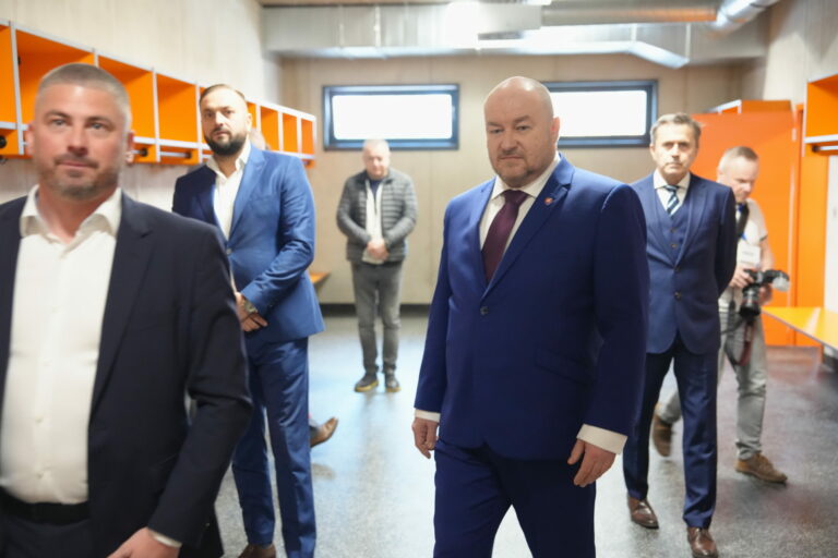 Minister cestovného ruchu a športu SR Rudolf Huliak (uprostred) počas slávnostného otvorenia novej Šport arény v Malackách. Malacky, 25. marec 2025. Foto: SITA/Ministerstvo cestovného ruchu a športu SR