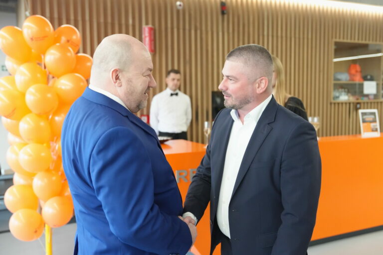 Zľava: Minister cestovného ruchu a športu SR Rudolf Huliak a primátor Malaciek Juraj Říha počas slávnostného otvorenia novej Šport arény v Malackách. Malacky, 25. marec 2025. Foto: SITA/Ministerstvo cestovného ruchu a športu SR