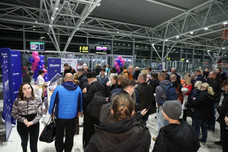Atmosféra v odletovej hale počas prvého letu dopravcu Wizz Air na trase Bratislava - Košice - Bratislava z Letiska Milana Rastislava Štefánika v Bratislave. Bratislava, 21. november 2025. Foto: SITA/Letisko M. R. Štefánika