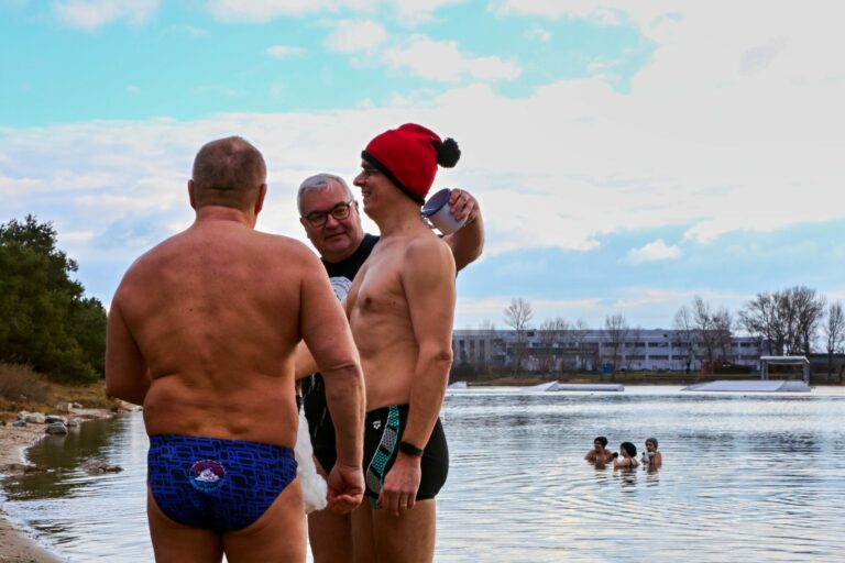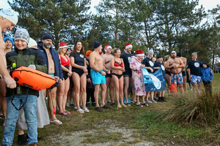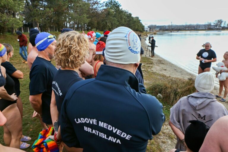 Zahájenie slávnostného krstu otužilcov Ľadové Medvede Bratislava na Zlatých Pieskoch v Bratislave. Bratislava, 24. december 2024. Foto: SITA/Tomáš Susko.