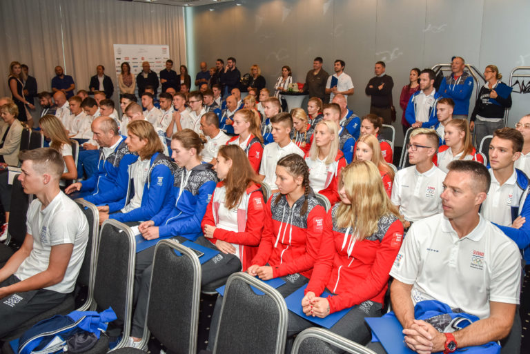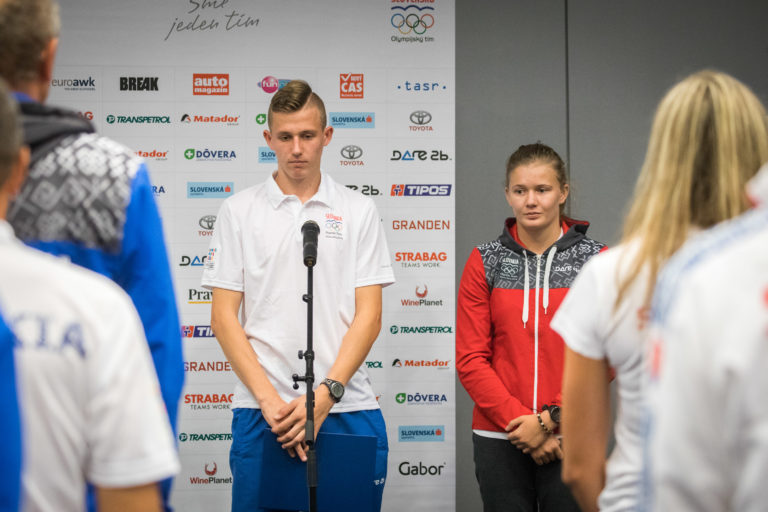 Atmosféra počas slávnostného sľubu členov slovenského reprezentačného tímu pred odchodom na III. olympijské hry mládeže (OHM) v argentínskom Buenos Aires. Bratislava, 1. október 2018. Foto: SITA/Diana Černáková