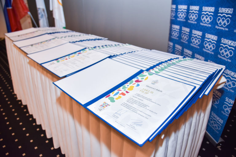 Pohľad na menovacie dekréty počas slávnostného sľubu členov slovenského reprezentačného tímu pred odchodom na III. olympijské hry mládeže (OHM) v argentínskom Buenos Aires. Bratislava, 1. október 2018. Foto: SITA/Diana Černáková