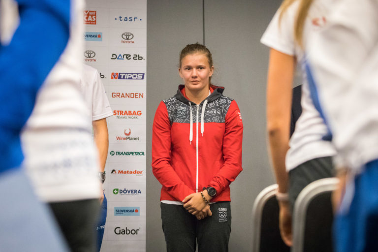 Slovenská boxerka Jessica Triebeľová počas slávnostného sľubu členov slovenského reprezentačného tímu pred odchodom na III. olympijské hry mládeže (OHM) v argentínskom Buenos Aires. Bratislava, 1. október 2018. Foto: SITA/Diana Černáková