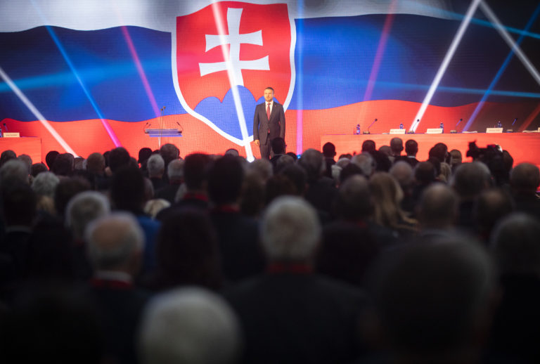 Premiér SR a podpredseda strany SMER-sociálna demokracia Peter Pellegrini počas zahájenia Slávnostné snemu strany SMER-sociálna demokracia. Bratislava, 7. december 2019. Foto: SITA/Branislav Bibel