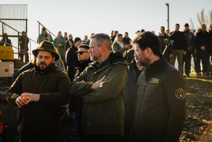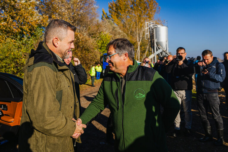 Prezident SR Peter Pellegrini počas slávnostného výlovu rýb na Boheľovských rybníkoch, ktorý symbolicky otvára obdobie blížiacich sa Vianoc. Boheľov, 7. november 2025. Foto: SITA/Kancelária prezidenta SR
