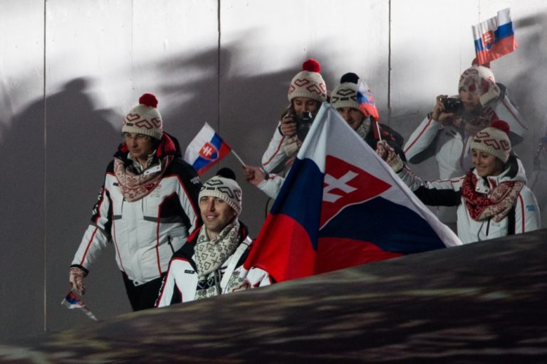 Členovia slovenskej výpravy počas otváracieho ceremoniálu zimných olympijských hier v Soči. Foto: SITA/AP