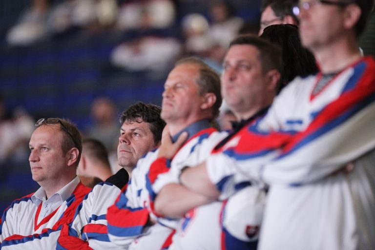 Fanúšikovia po zápase USA - Slovensko základnej B-skupiny majstrovstiev sveta v ľadovom hokeji 2015 v Českej republike. Ostrava, 12. máj 2015. Foto: SITA/Ján Viazanička