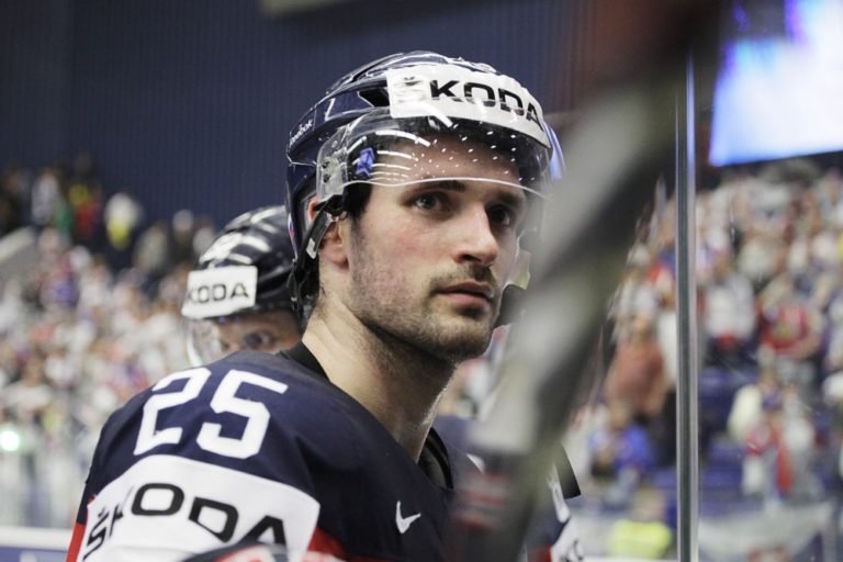 Kapitán Tomáš Kopecký po zápase USA - Slovensko základnej B-skupiny majstrovstiev sveta v ľadovom hokeji 2015 v Českej republike. Ostrava, 12. máj 2015. Foto: SITA/Ján Viazanička