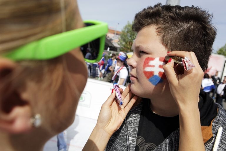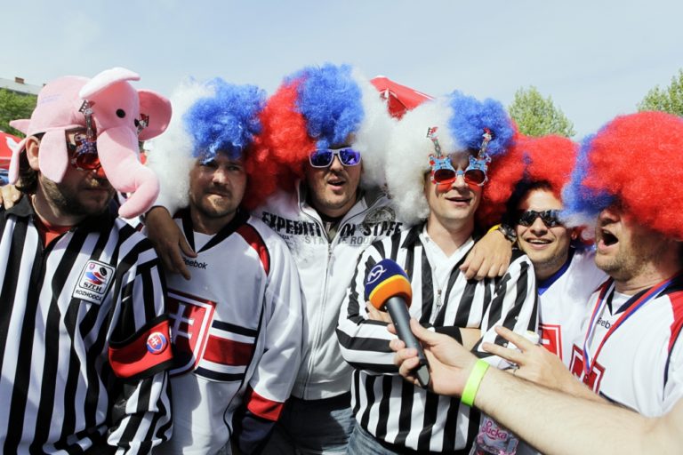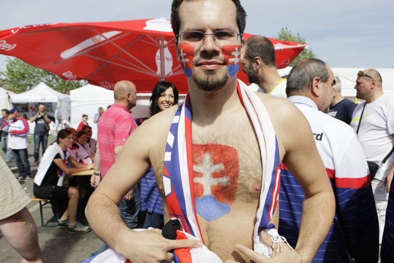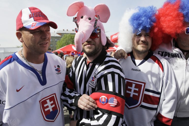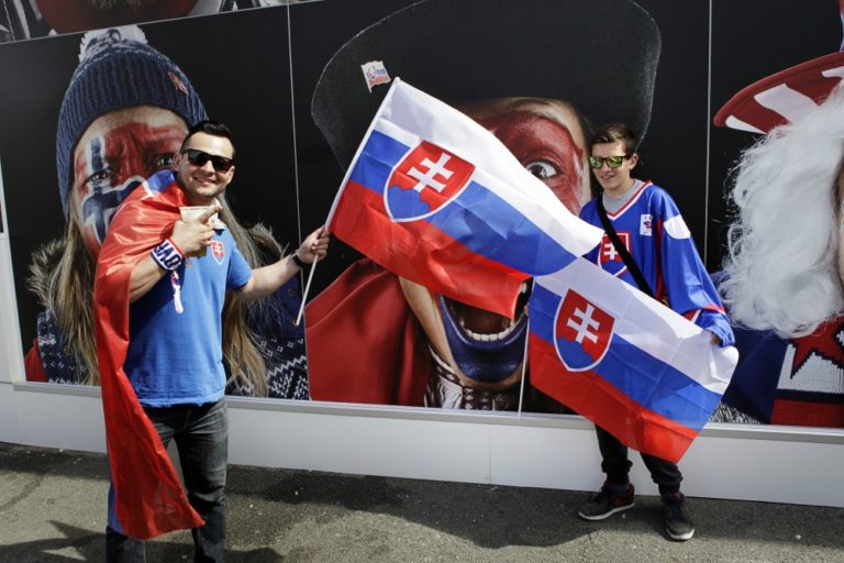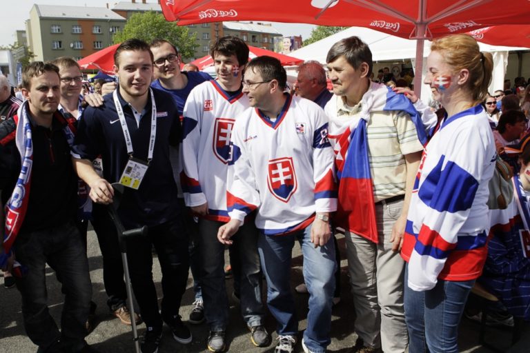Fanúšikovia pred zápasom USA - Slovensko základnej B-skupiny majstrovstiev sveta v ľadovom hokeji 2015 v Českej republike. Ostrava, Česká republika, 12. máj 2015. Foto: SITA/Ján Viazanička