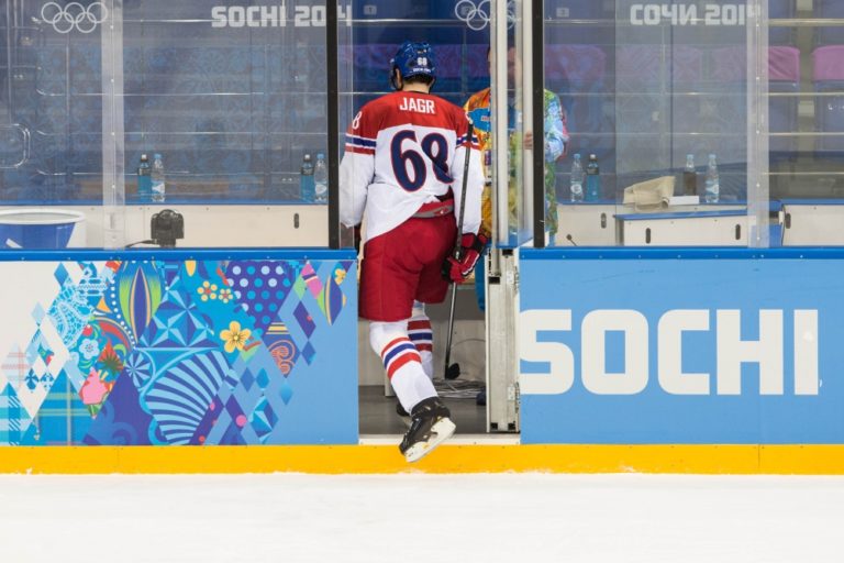 Hráč Česka Jaromír Jágr počas zápasu Česko - Slovensko o postup do štvrťfinále na ZOH 2014 v Soči. Rusko, Soči, 18. február 2014. Foto: SITA/Jozef Jakubčo