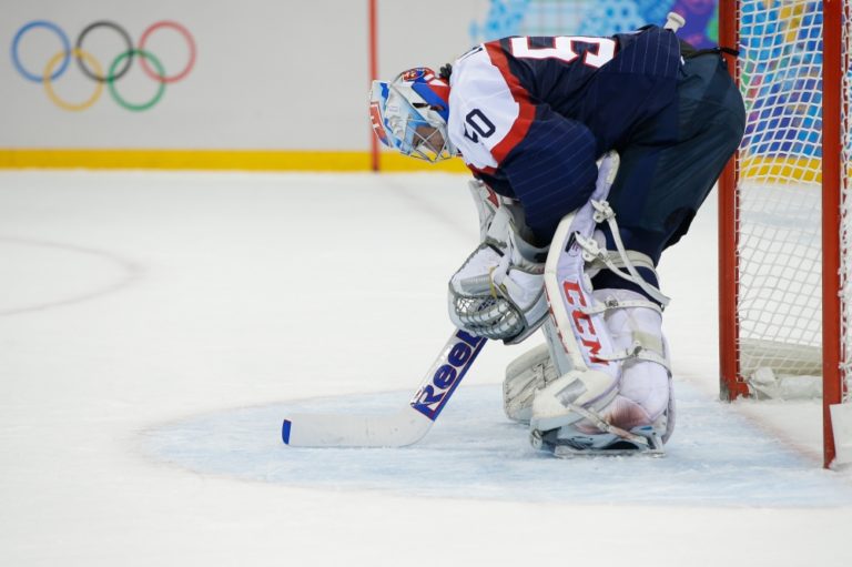 Slovenský brankár Ján Laco v boji o štvrtfinále v Soči. Foto: SITA/AP