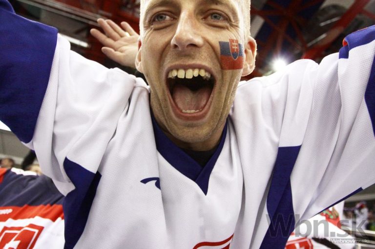 Radosť slovenského fanúšika po strelení prvého slovenského gólu počas zápasu Kanada - Slovensko základnej skupiny majstrovstiev sveta v ľadovom hokeji 2014 v Minsku. Bielorusko, Minsk, 10. máj 2014. Foto: SITA/Ján Viazanička