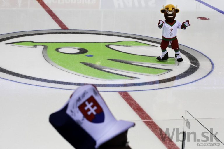 Nástup slovenských hráčov počas zápasu Kanada - Slovensko základnej skupiny Majstrovstiev sveta v ľadovom hokeji 2014 v Minsku. Bielorusko, Minsk, 10. máj 2014. Foto: SITA/Ján Viazanička