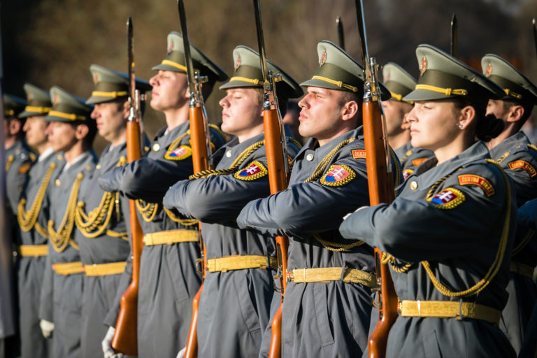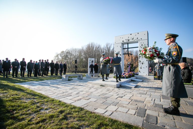 Čestná stráž počas pietnej spomienky na obete komunizmu pred pamätníkom Brána slobody na Devíne pri príležitosti Dňa boja za slobodu a demokraciu. Bratislava, 17. november 2018. Foto: SITA/Jana Birošová