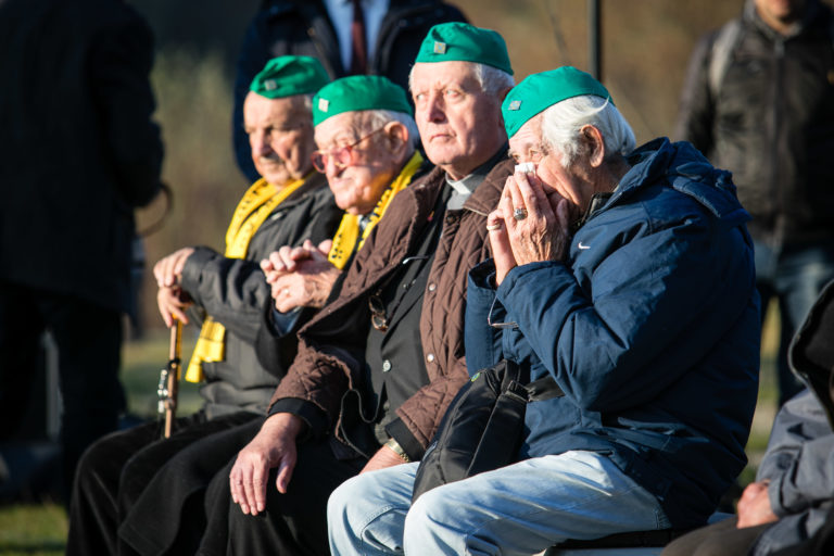 Bývalí politickí väzni počas pietnej spomienky na obete komunizmu pred pamätníkom Brána slobody na Devíne pri príležitosti Dňa boja za slobodu a demokraciu. Bratislava, 17. november 2018. Foto: SITA/Jana Birošová