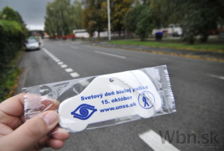 Upomienkový predmet pre vodičov počas 6. ročníka dopravno-výchovnej akcie pri príležitosti Svetového dňa bielej palice, ktorú organizuje Únia nevidiacich a slabozrakých Slovenska v spolupráci s Prezídiom Policajného zboru v 51 mestách na Slovensku. Trenčín, 15. október 2015. Foto: SITA/Tomáš Somr