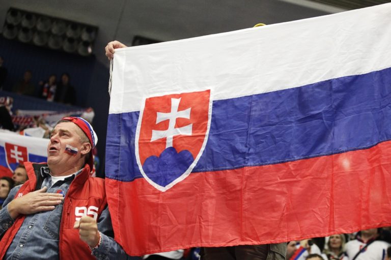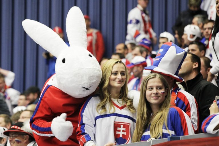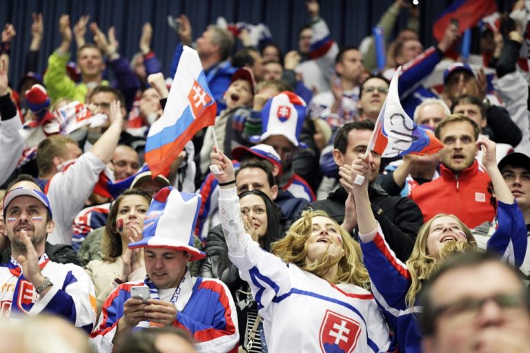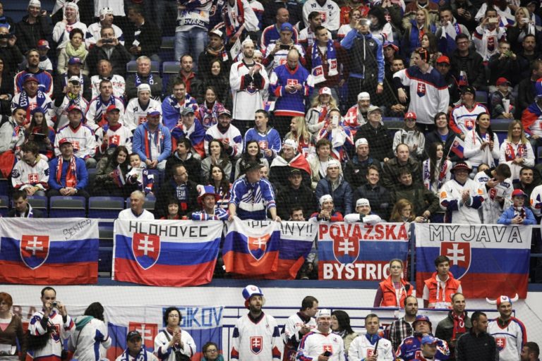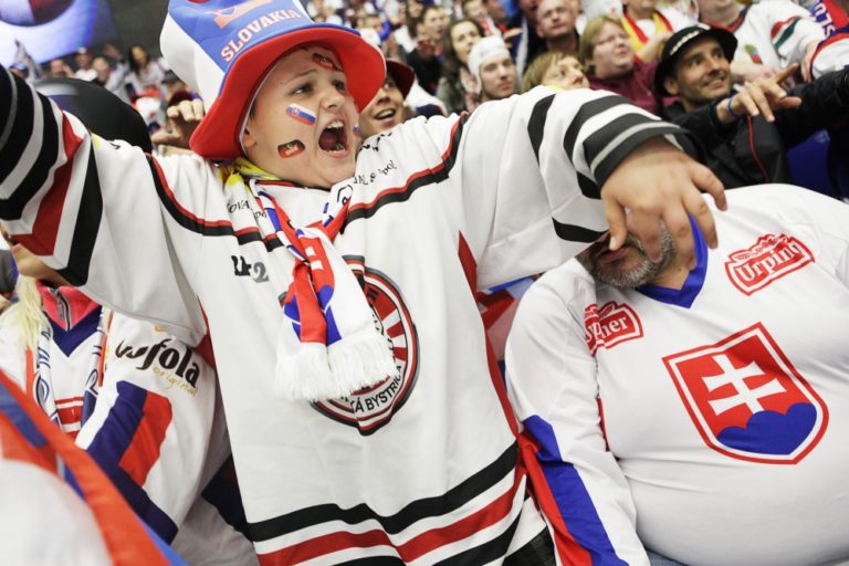 Fanúšikovia pred zápasom základnej B-skupiny majstrovstiev sveta v ľadovom hokeji 2015 v Českej republike medzi Slovenskom a Dánskom. Ostrava, 2. máj 2015. Foto: SITA/Ján Viazanička
