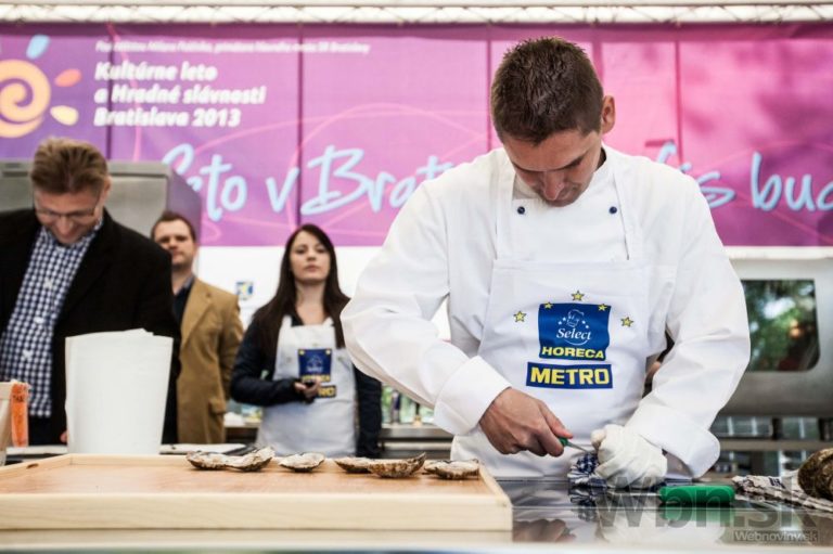 Majstrovstvá SR v otváraní ustríc počas gastronomického festivalu Slovak Food Festival 2013 v areáli Bratislavského hradu. Bratislava, 24. máj 2013. Foto: SITA/Jozef Jakubčo