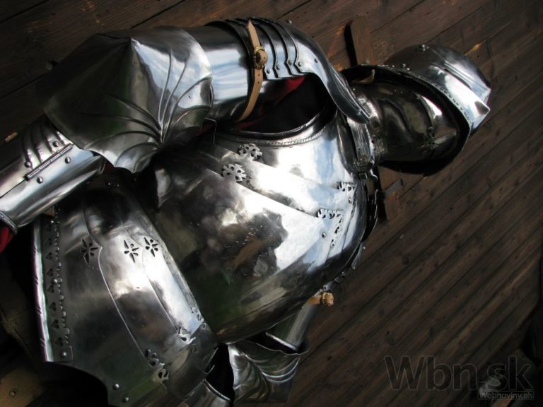 Maximiliánka černená zbroj z roku 1525. Ide o jazdeckú žliabkovanú zbroj nemeckého typu. Žliabky zvyšovali pevnosť a odolnosť zbroje najmä voči sekom ťažkých halapartní, avšak pre náročnosť výroby sa v krátkom časovom úseku prestala vyrábať. Foto: Archív PN