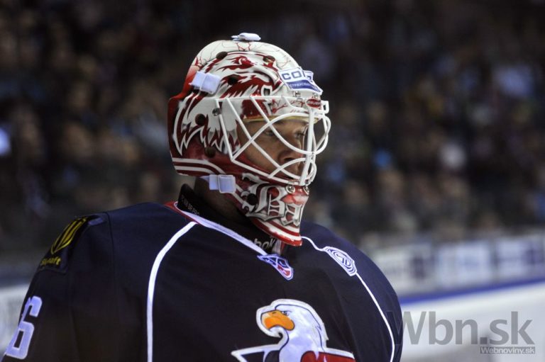 Brankár Johan Backlund zo Slovana počas zápasu Kontinentálnej hokejovej ligy proti Atlantu Mytišči. Bratislava, 29. november 2014. Foto: SITA/Ján Slovák