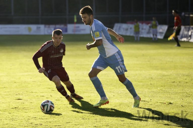 Milan Harvilko (vľavo) z ŽP Šport Podbrezová a Marko Milinkovič (vpravo) z ŠK Slovan Bratislava počas zápasu 12. kola futbalovej Fortuna ligy medzi ŽP Šport Podbrezová – ŠK Slovan Bratislava. Podbrezová, 28. september 2014. Foto: SITA/Ján Viazanička