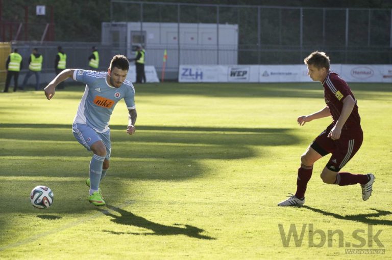 Vratislav Greško (vpravo) z ŽP Šport Podbrezová a Marko Milinkovič (vľavo) z ŠK Slovan Bratislava počas zápasu 12. kola futbalovej Fortuna ligy medzi ŽP Šport Podbrezová – ŠK Slovan Bratislava. Podbrezová, 28. september 2014. Foto: SITA/Ján Viazanička
