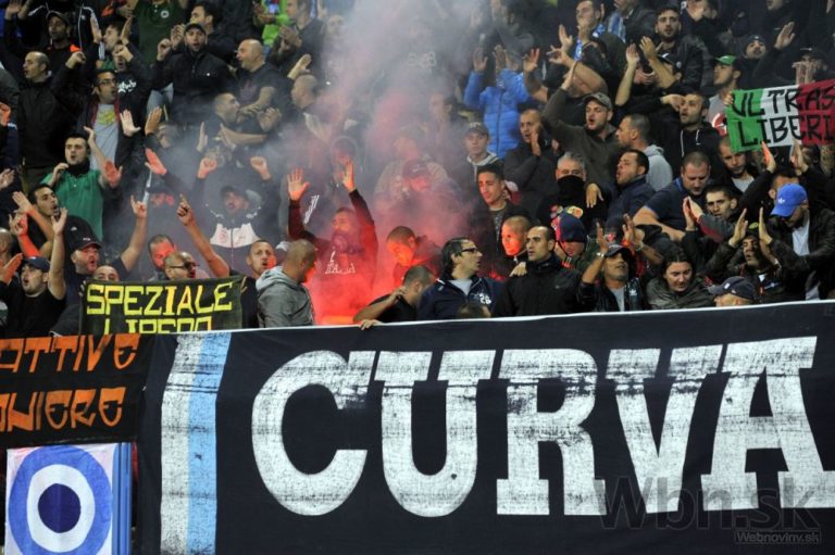 Fanúšikovia 'partenopei' počas zápasu skupinovej fázy 2. kola I. skupiny Európskej ligy medzi Slovanom Bratislava a SSC Neapol. Bratislava, 2. október 2014. Foto: SITA/Ján Slovák