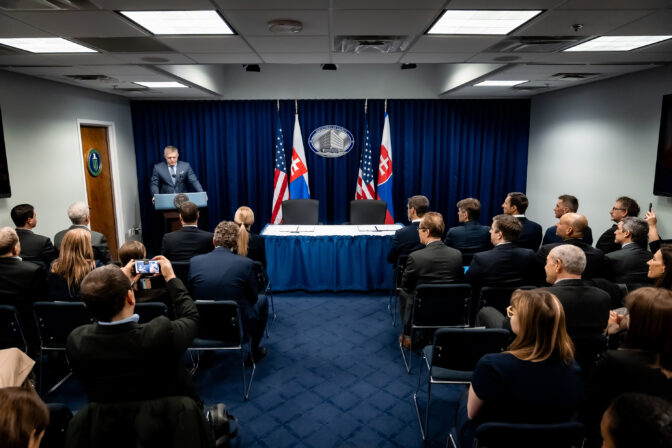 Súboj Andreja Kudrnu s Pavlom Valentenkom počas nedeľňajšieho zápasu KHL, v ktorom Slovan vyhral po samostatných nájazdoch 3:2. Foto: facebook.com/hcavangardomsk