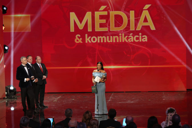 Víťazka v kategórii média a komunikácia Zuzana Ťapáková počas galavečera tretieho ročníka ankety Slovenska roka. Foto: SITA/Nina Bednáriková