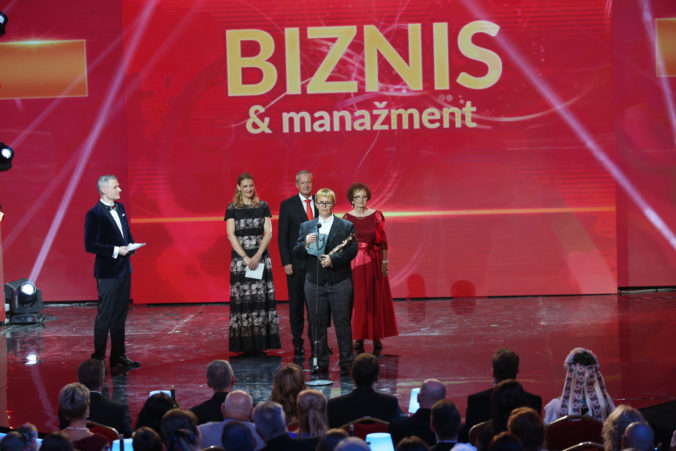 Víťazka v kategórii Biznis a manažment Slavomíra Blahušiaková počas vyhlasovania výsledkov 10. ročníka čitateľskej ankety Slovenka roka 2018 v historickej budove Slovenského národného divadla. Bratislava, 5. jún 2018. Foto: SITA/Slovenka roka/Ramon Leško.