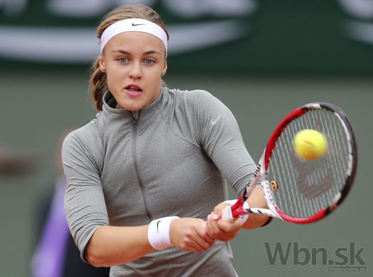 Slovenská tenistka Anna Schmiedlová vracia loptičku Američanke Venus Williamsovej na Roland Garros. Paríž, Francúzsko, 28. mája 2014.