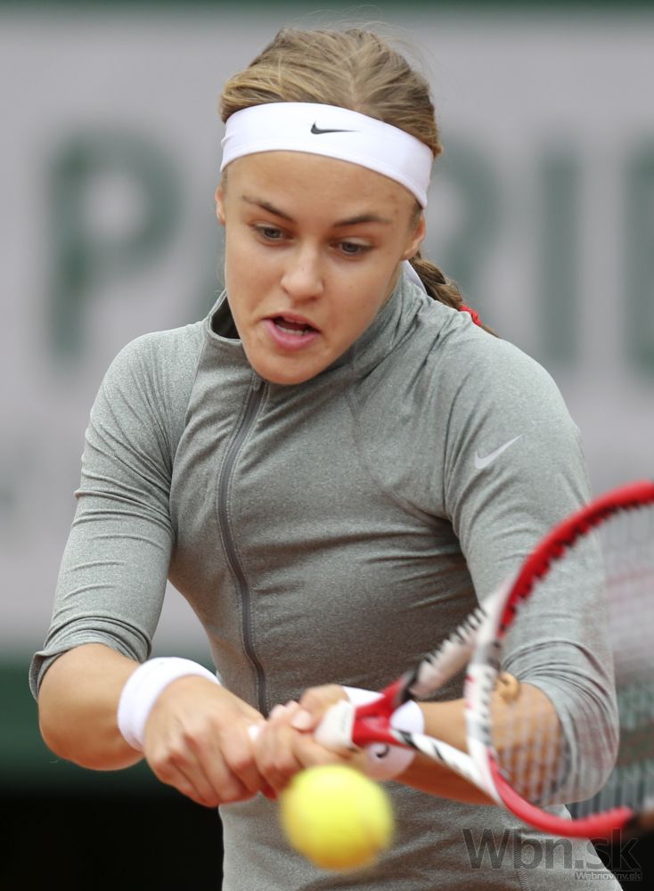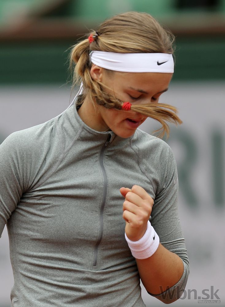 Slovenská tenistka Anna Karolína Schmiedlová sa teší z víťazstva nad Američankou Venus Williamsovou na Roland Garros. Paríž, Francúzsko, 28. mája 2014. Foto: SITA/AP