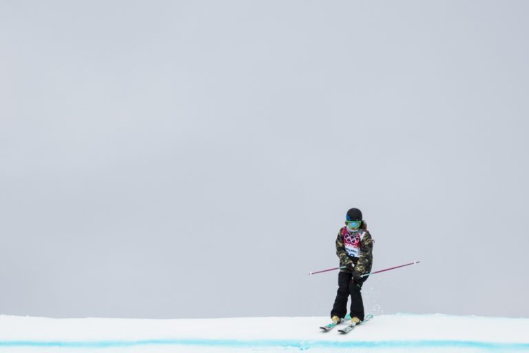 Slovenská reprezentatka v akrobatickom lyžovaní - slopstyle Zuzana Stromková počas kvalifikácie v disciplíne slopstyle na ZOH 2014 v Soči. Foto: SITA/Jakub Jakubčo