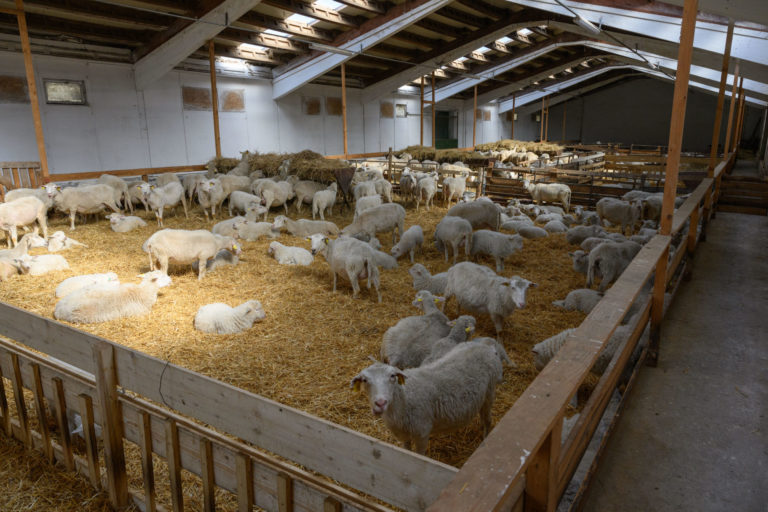 Interiér ovčína v priestoroch Poľnohospodárskeho družstva Liptovské Revúce, okres Ružomberok. Liptovské Revúce, 20. marec 2023. Foto: SITA/Miloslav Fabian