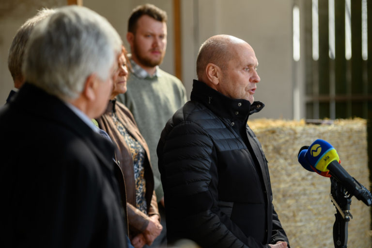 Predseda predstavenstva Zväzu chovateľov oviec a kôz Igor Nemčok počas tlačového brífingu Ministerstva pôdohospodárstva a rozvoja vidieka (MPRV) SR v Poľnohospodárskom družstve (PD) Liptovské Revúce na tému: Slovenská jahňacina patrí medzi najkvalitnejšie. Liptovské Revúce, 20. marec 2023. Foto: SITA/Miloslav Fabian