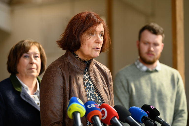 Zľava: Generálna tajomníčka služobného úradu Zuzana Nouzovská, členka Výkonného výboru Vidieckej platformy Anna Balková a zástupca spracovateľa jahňaciny Jozef Žilinec počas tlačového brífingu Ministerstva pôdohospodárstva a rozvoja vidieka (MPRV) SR v Poľnohospodárskom družstve (PD) Liptovské Revúce na tému: Slovenská jahňacina patrí medzi najkvalitnejšie. Liptovské Revúce, 20. marec 2023. Foto: SITA/Miloslav Fabian