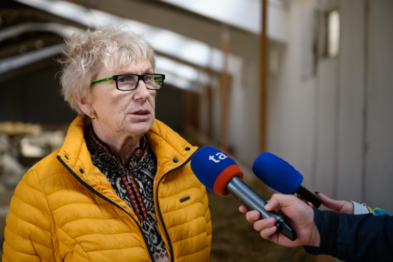 Predsedníčka PD Liptovské Revúce Anna Kováčiková počas tlačového brífingu Ministerstva pôdohospodárstva a rozvoja vidieka (MPRV) SR v Poľnohospodárskom družstve (PD) Liptovské Revúce na tému: Slovenská jahňacina patrí medzi najkvalitnejšie. Liptovské Revúce, 20. marec 2023. Foto: SITA/Miloslav Fabian