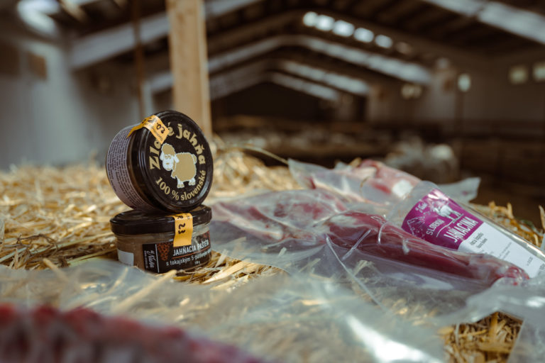 Výrobky z jahňaciny prezentované v priestoroch Poľnohospodárskeho družstva Liptovské Revúce, okres Ružomberok. Liptovské Revúce, 20. marec 2023. Foto: SITA/Milo Fabian
