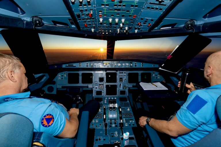 Pilotná kabína letky SR, ktorou Letecký útvar Ministerstva vnútra SR prostredníctvom aktivácie modulu EURACARE Flight & Shelter v stredu 2. apríla 2025 vykonal zdravotníckú evakuačnú operáciu. Z pásma Gazy slovenský tím prepravil 13 pediatrických pacientov spolu s ich rodinnými príslušníkmi. Bratislava, 3. apríl 2025. Foto: SITA/ MV SR