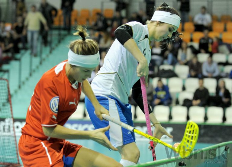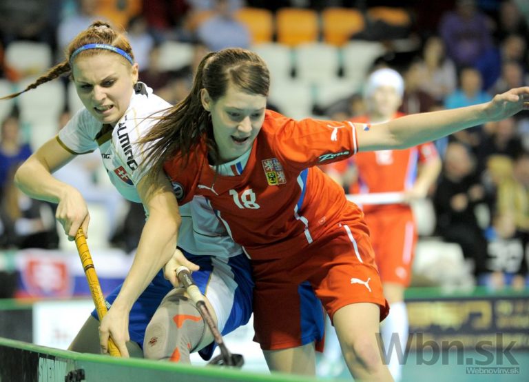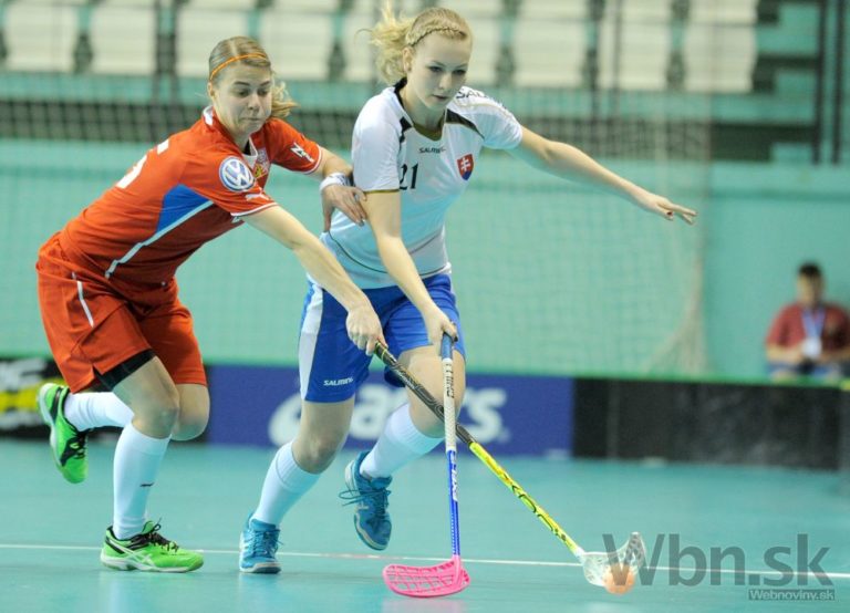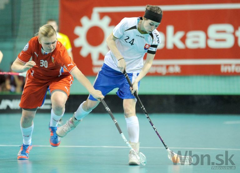 Lucia Košturiaková zo Slovenska (vpravo) a Denisa Ratajová z Českej republiky (vľavo) počas kvalifikačného zápasu na MS 2015 žien medzi Slovensko - Česko. Nitra, 6. február 2015. Foto: SITA/Martin Havran