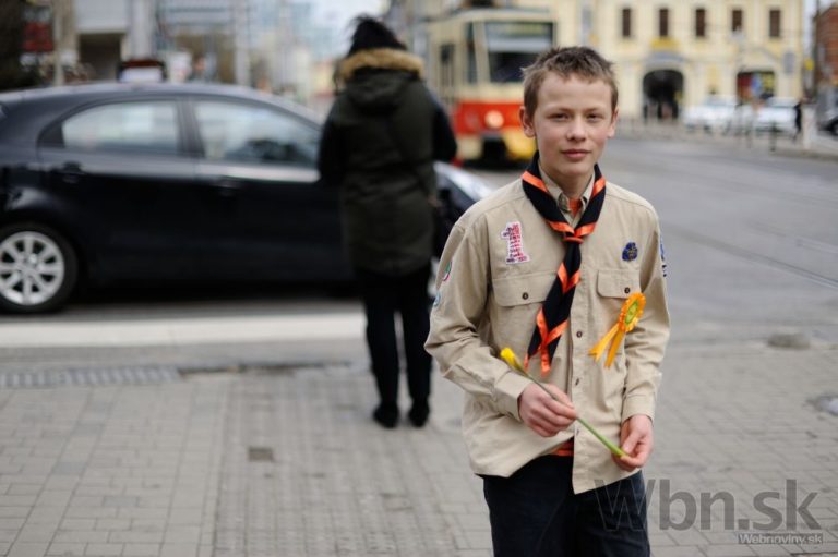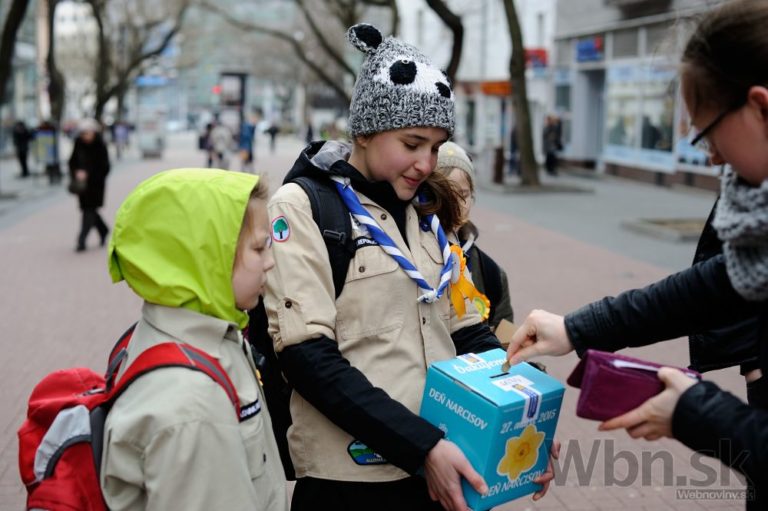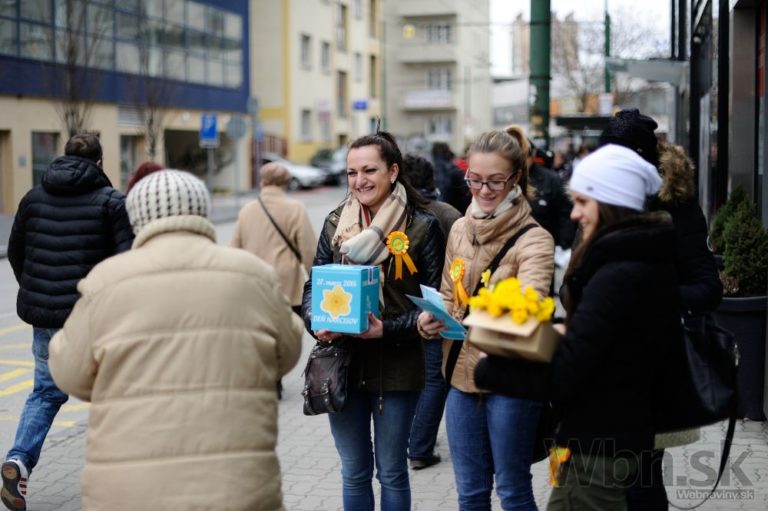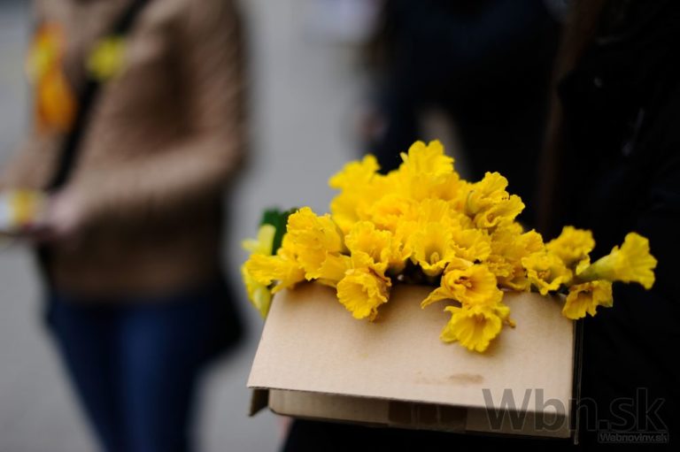 Deň narcisov v bratislavskom Starom meste je 19. ročníkom celoslovenskej finančnej zbierky Ligy proti rakovine. Žltý narcis je symbolom nádeje pre tých, ktorí bojujú s onkologickým ochorením. Bratislava, 27. marec 2015. Foto: SITA/Robert Tappert