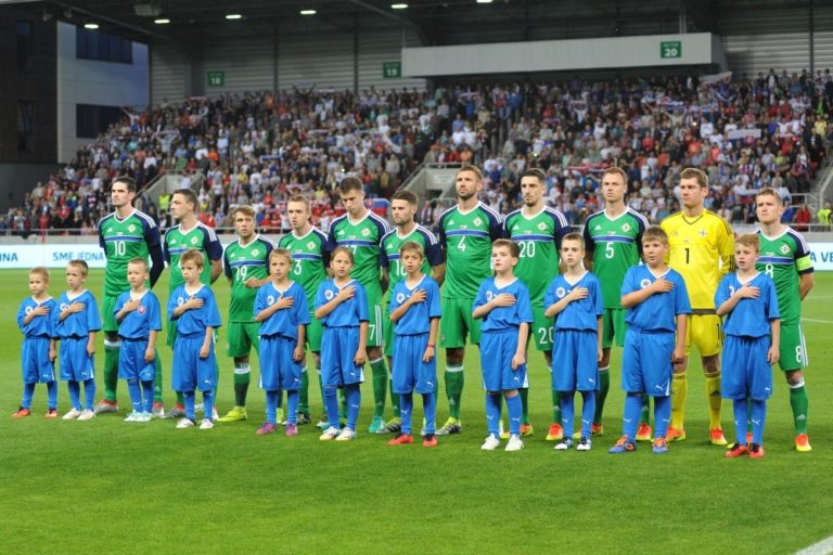 Hráči Severného Írska pred prípravným medzištátnym futbalovým zápasom Slovensko - Severné Írsko. Trnava, 4. jún 2016. Foto: SITA/Ivan Kopčáni